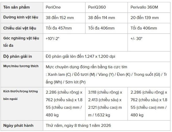 Theo kế hoạch, Peri Series sẽ được giới thiệu và trình diễn tại nhiều sự kiện ngành in quốc tế, trong đó có PPAI Expo 2026 diễn ra tại Las Vegas (Mỹ), nhằm giúp khách hàng đánh giá trực tiếp hiệu quả ứng dụng của các giải pháp máy in UV 360 công nghiệp trong sản xuất thực tế.