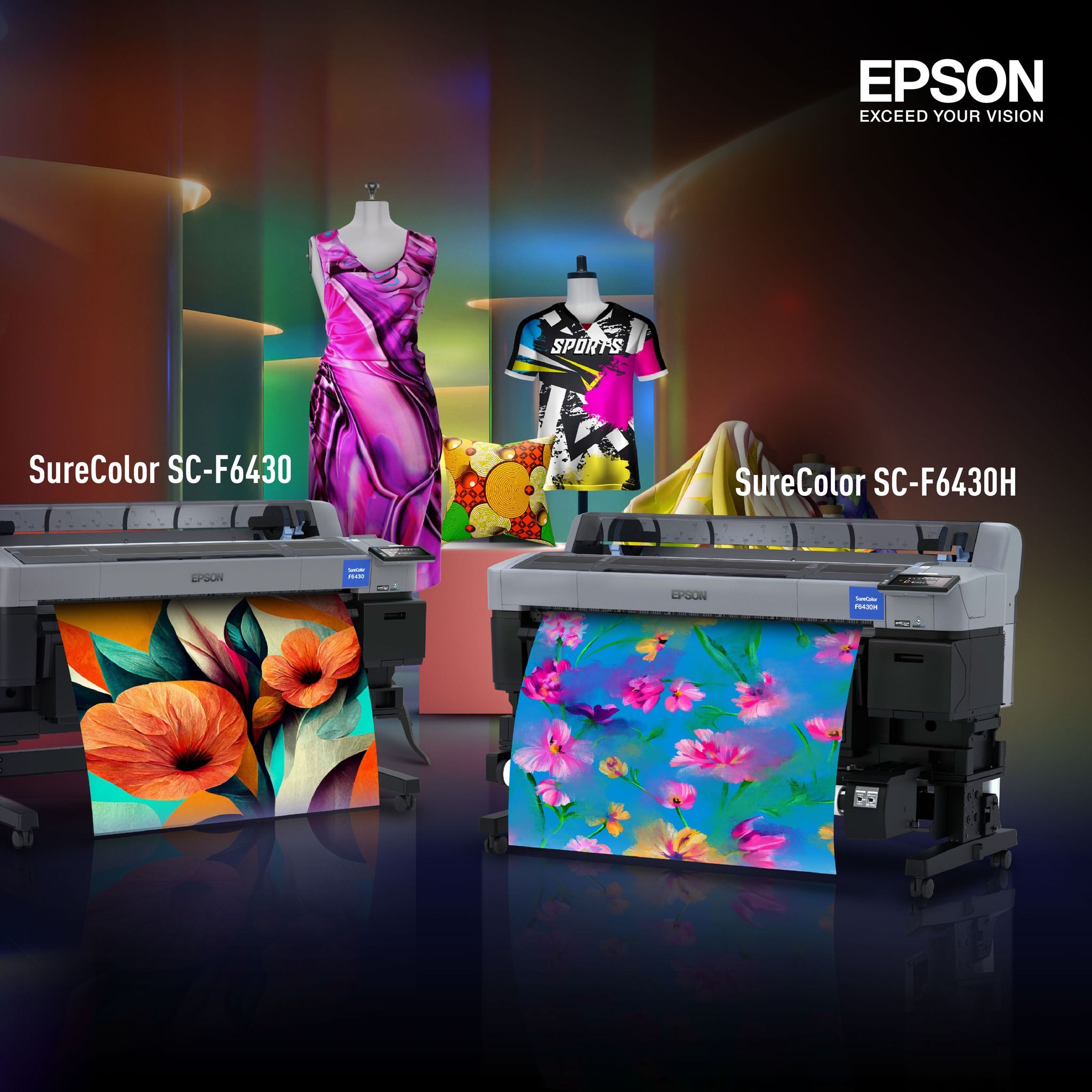 Epson SureColor SC-F6430 và SC-F6430H mang lại mật độ màu sắc và độ rực rỡ chưa từng thấy. Ứng dụng nhiều trong các sản phẩm như cờ vải, thời trang nhanh và đồ gia dụng, đồ nội thất như rèm cửa và đệm,...