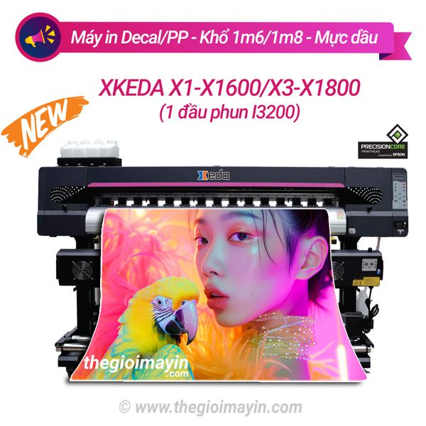 Máy in Decal Xkeda 1m6/1m8 1 đầu phun i3200 mực dầu