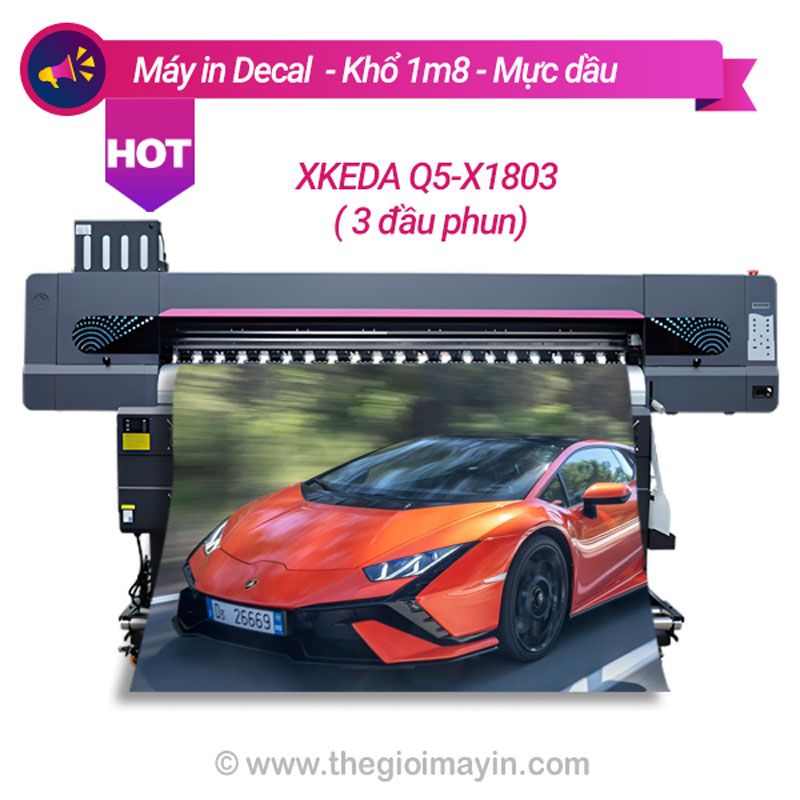Máy in Decal Xkeda Q3-X1803 sử dụng 3 đầu phun i3200 của Nhật. Xkeda là dòng máy in Decal PP đang rất được ưu chuộng. dòng máy in quảng cáo đa dạng chức năng, có thể sử dụng để:in tem xe máy, in tem nhãn,in bảng hiệu, hộp đèn chất lượng cao. Máy in decal này có Độ bền cao – ít hư hao – dễ bảo trì.
